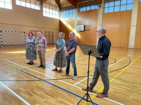 Durch das Programm führten Jasmin Faller und Florian Schäfer aus der 6a. Ihre Klasse blickte mit einem Sketch auf die eigene Einschulung vor einem Jahr zurück. Sechs Kinder der Klasse 6c tanzten in Tanzsäcken den Begrüßungstanz „Sali Bonani“. Schulleiter Markus Jung sprach den aufgeregten Kindern und ihren Eltern Mut zu. Die Unsicherheit werde sich legen und es beginne eine neue, aufregende Zeit. Der Schulelternbeirat, vertreten durch Silke Guttenberger und Steffen Mayer, Vertrauenslehrer Lucas Jung und die Schülersprecher Leona Krasniqi und Beytullah Baylan stellten sich dem Publikum vor. Am Ende des Programms tanzte die Klasse 6b den Macarena und motivierte das Publikum damit zum Mitklatschen. Schließlich begann der aufregende Teil der Klassenzuteilung. Den Wünschen, mit Freund oder Freundin gemeinsam in eine Klasse zu kommen, konnte laut Jung entsprochen werden. Nach einem gemeinsamen Fototermin gingen dann die neuen Fünfer mit ihren Lehrkräften gemeinsam in den Unterricht. Auf eine schöne gemeinsame Zeit an der PGS!